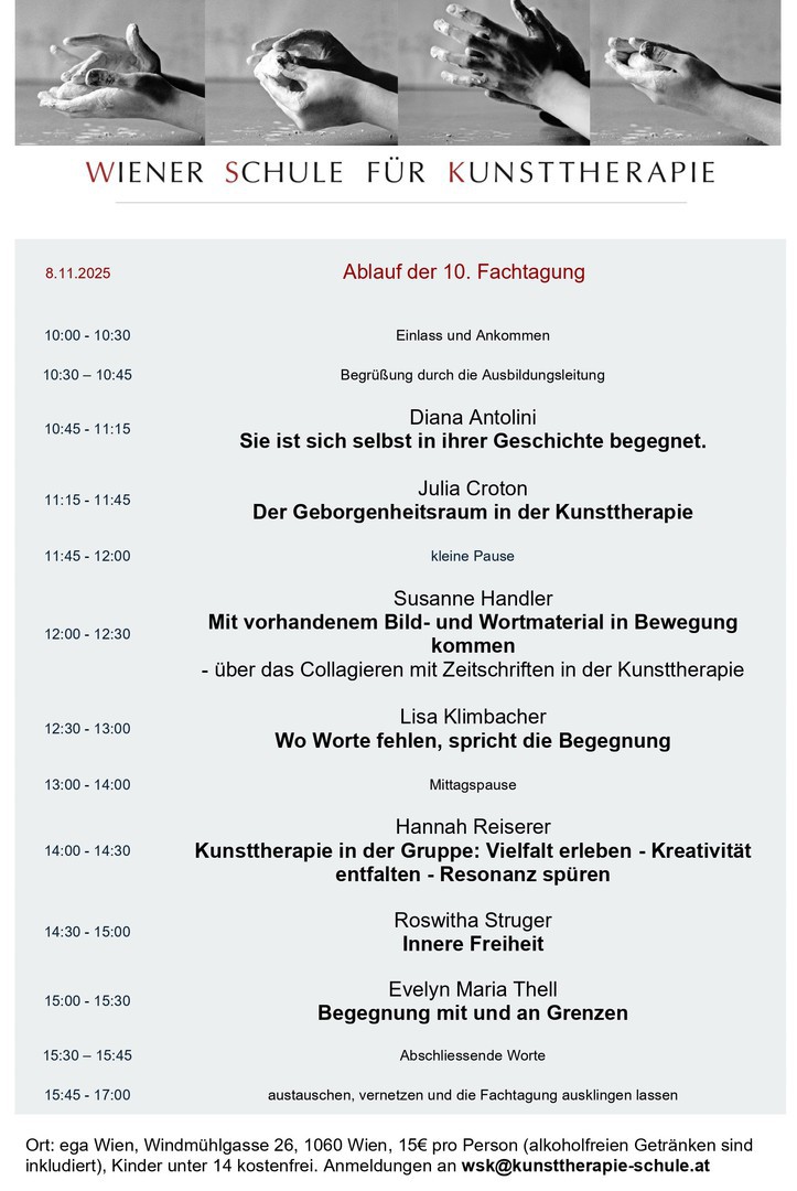 Die Wiener Schule für Kunsttherapie veranstaltet die bereits zehnte Fachtagung ihres Diplomlehrganges zur Diplom-Kunsttherapeut:in mit klinischer Erfahrung.